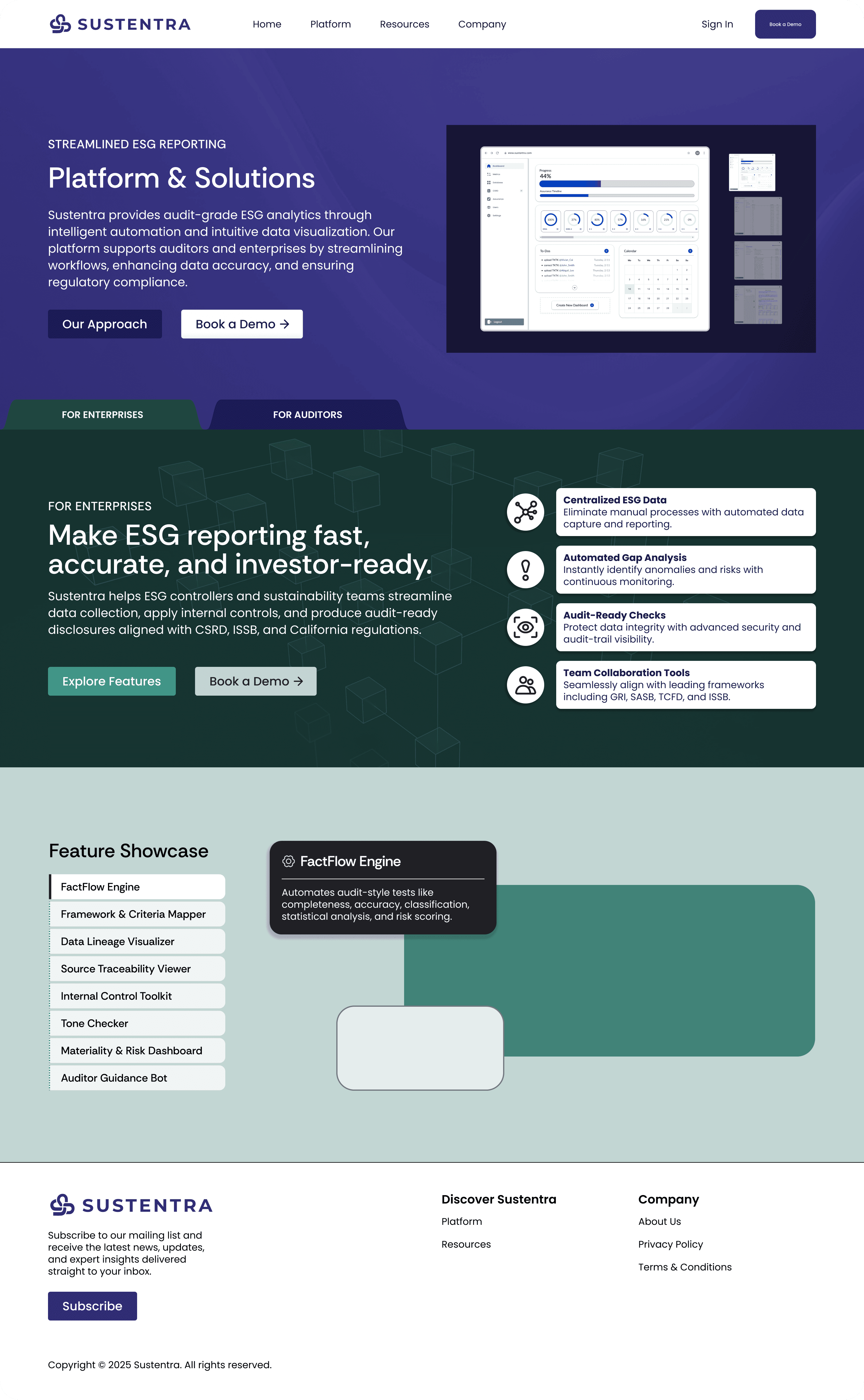Sustentra needed to stand out in a wave of ESG startups trying to replace legacy firms as the go-to option for CSRD compliance. However, while the company's core differentiator is its AI-powered three-way matching engine, we wanted to avoid triggering the security concerns and red flags that prospective clients often associate with Sustentra's black-box AI competitors.